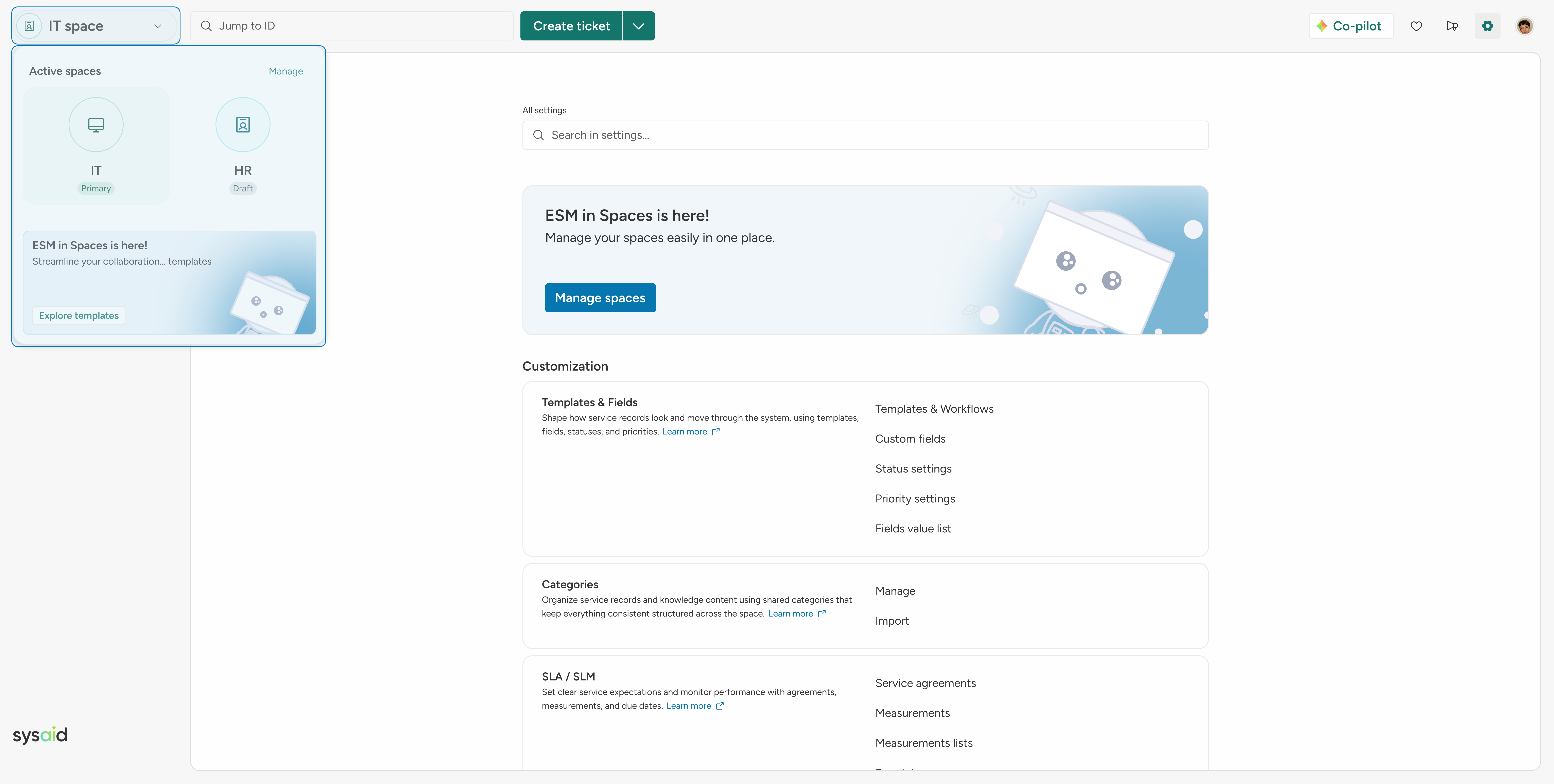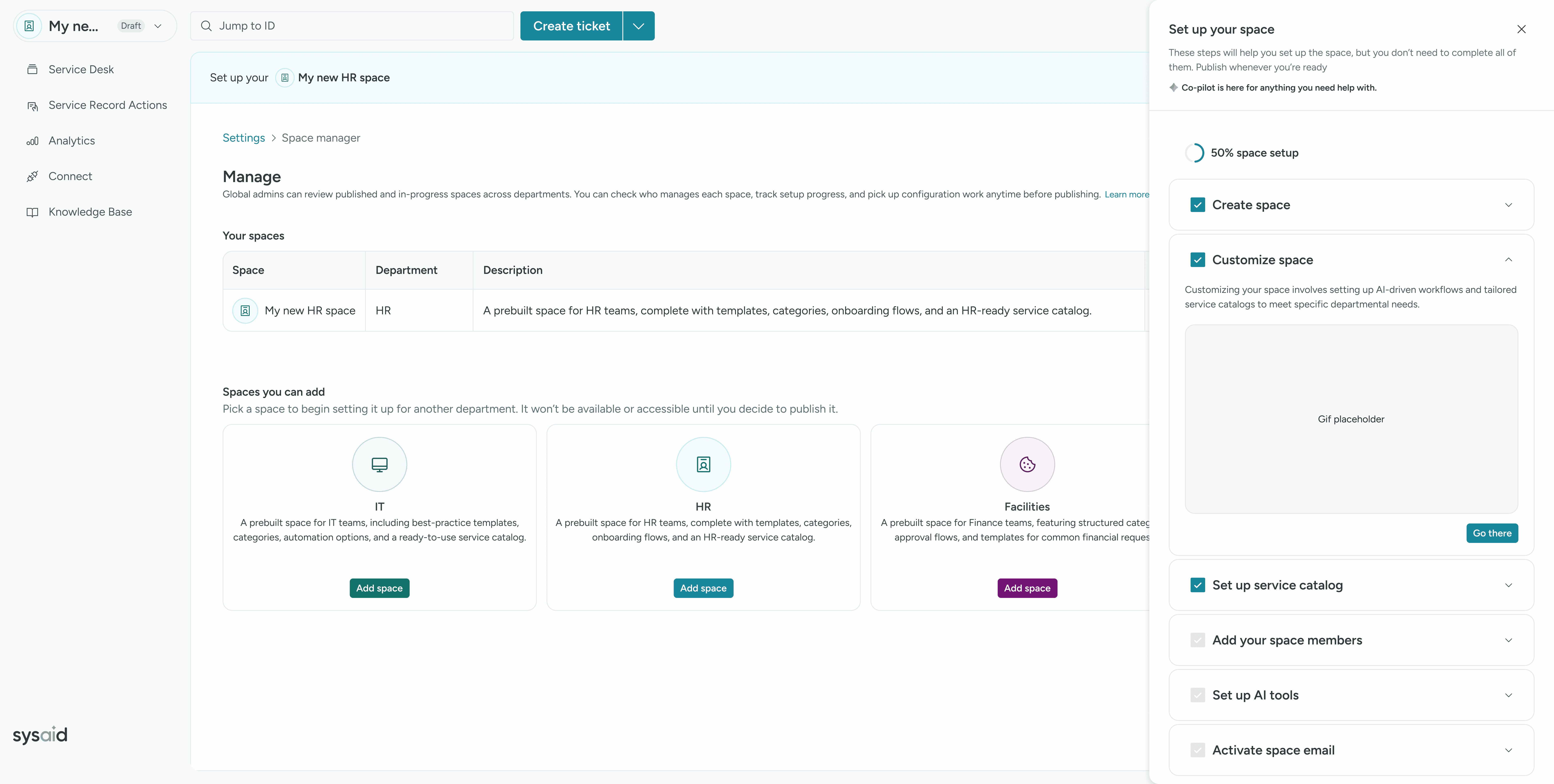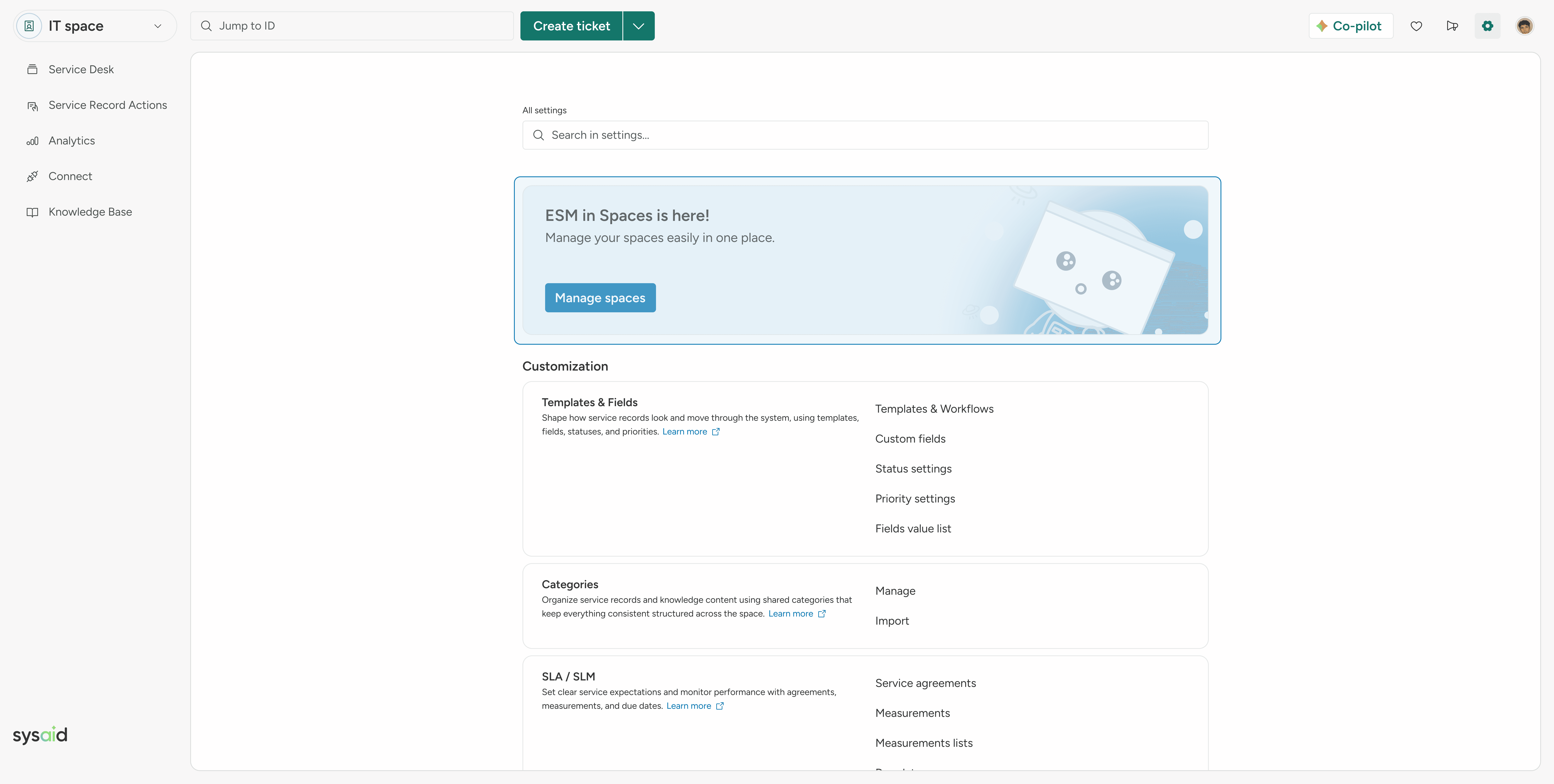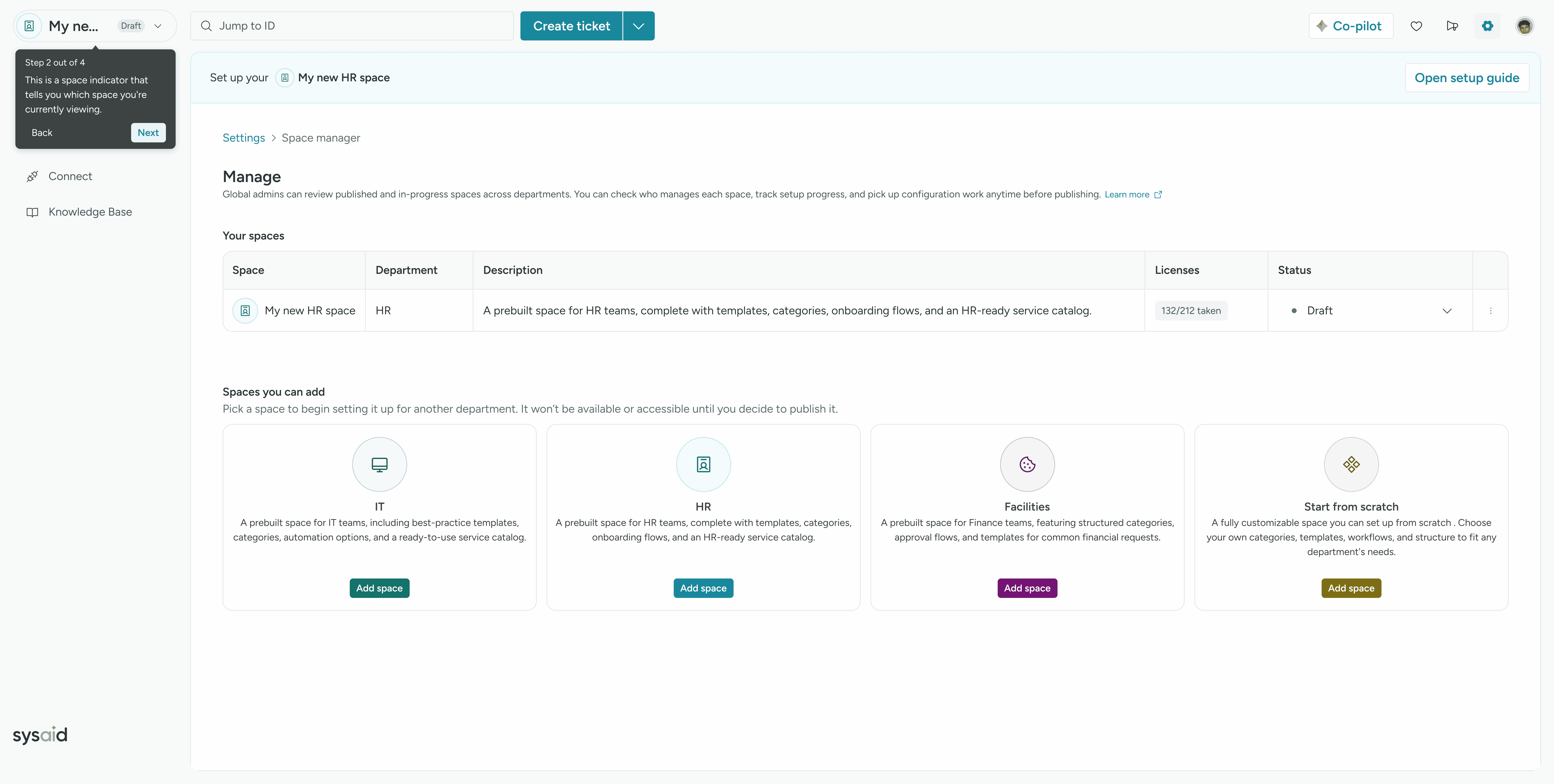 Self-serve Rate: % of new non-IT spaces complete setup (published) without SysAid assistance.